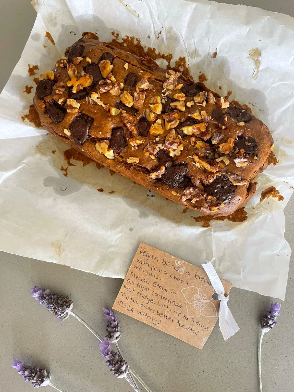 Moist, rich, and full of comfort — this banana bread is made with ripe bananas, warm cinnamon, and chocolate chips for a touch of sweetness. Baked with love and wholesome ingredients, it’s the perfect nourishing treat for slow mornings or afternoon moments of calm.